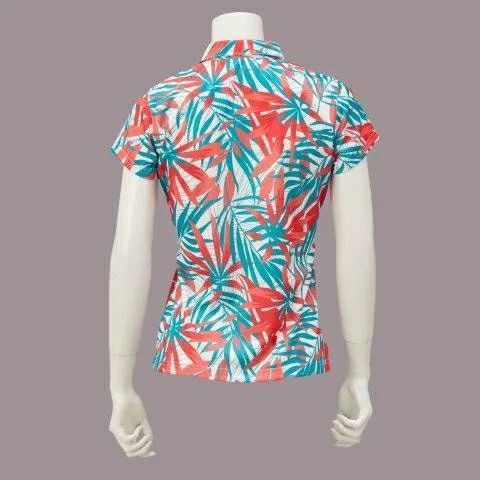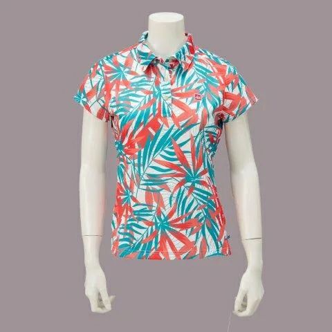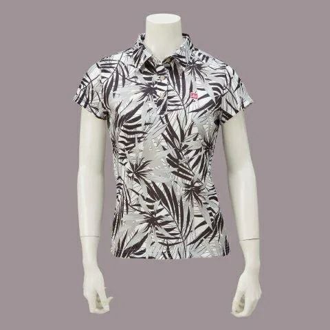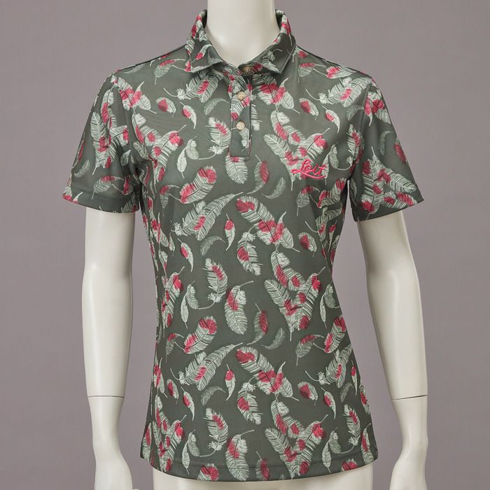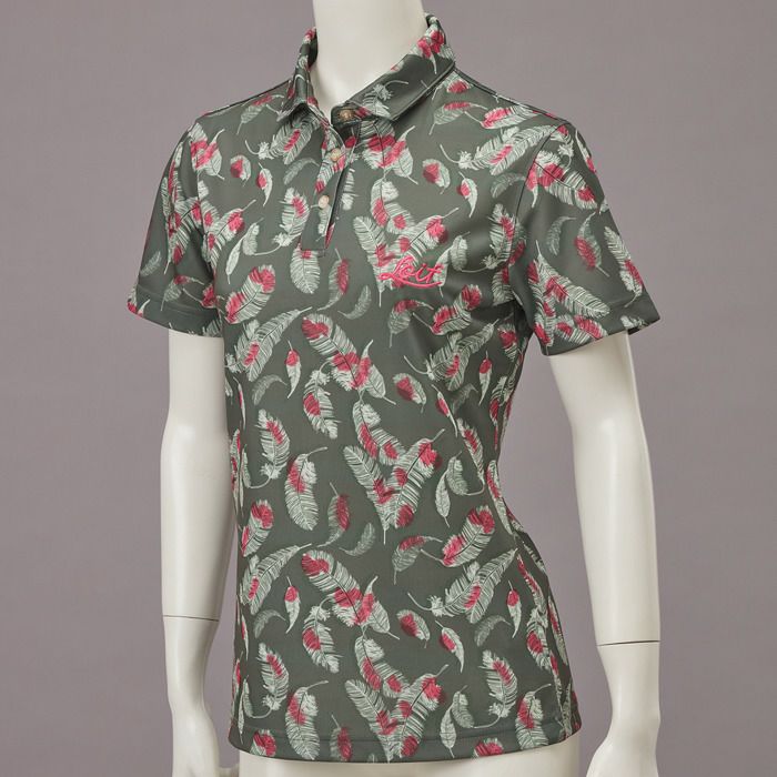 【YL1028W】 【70%OFF】ボタニカル柄 ポロシャツ UVカット(レディース)