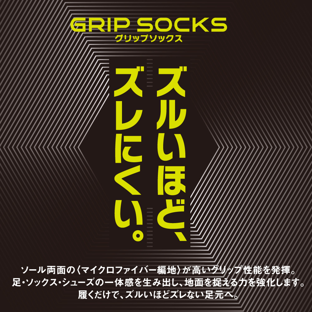 ●『ズルいほど、ズレにくい。』グリップソックス。