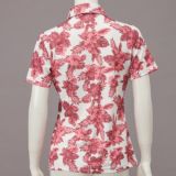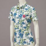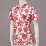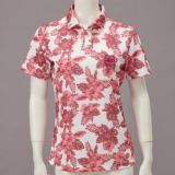 アウトドアを意識したオリジナルボタニカル柄をプリントしたポロシャツ。