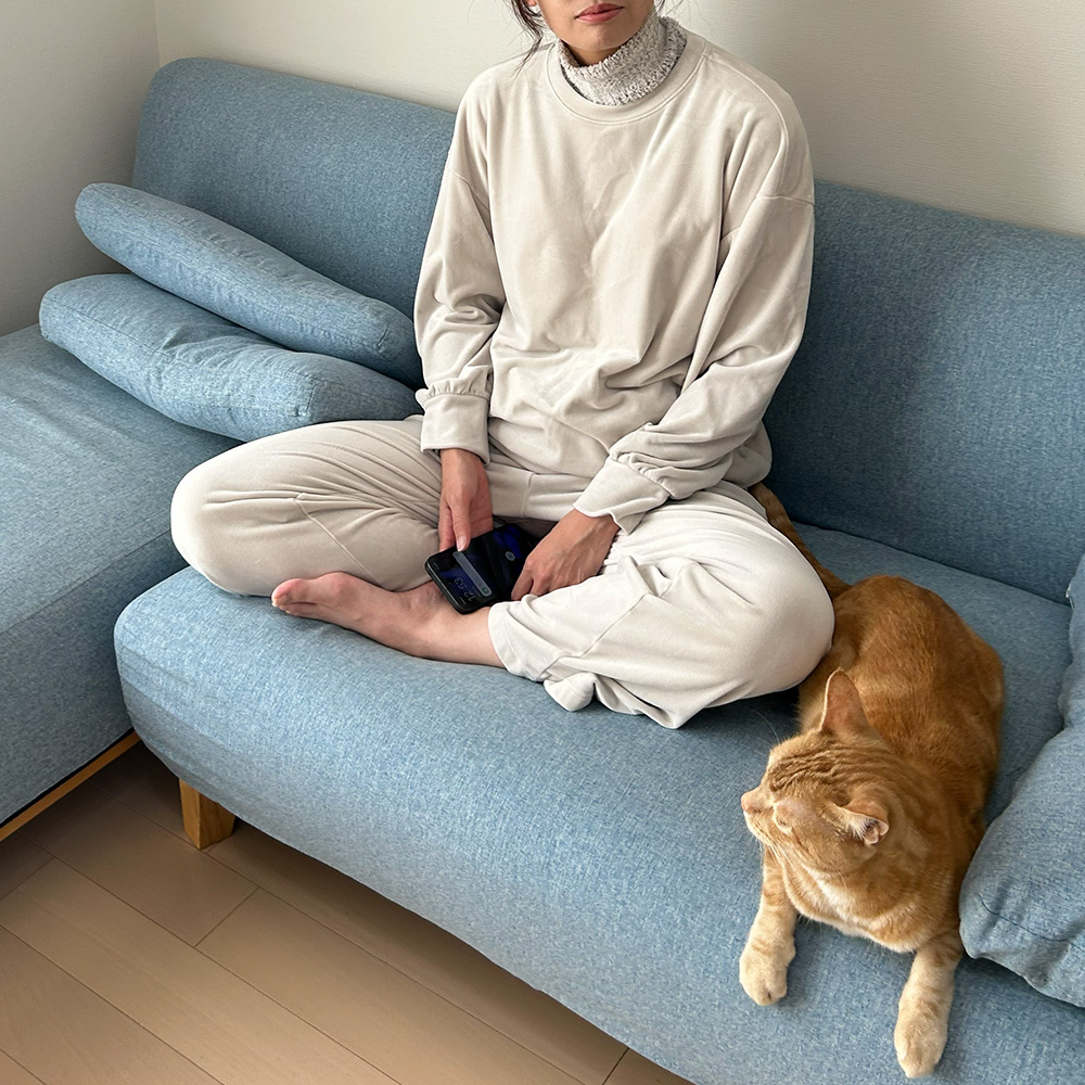ソファでくつろいでいるときや、寝る前のリラックスタイムにも違和感なく使え、首元がやさしく温まることで、自然と気持ちも落ち着きます。